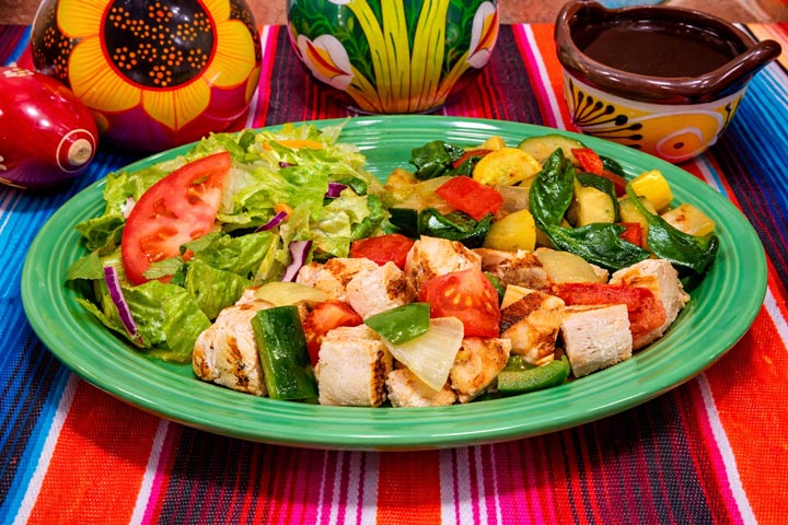 Boneless breast of chicken simmered in our velvety mol'e sauce. Spicy, but not hot!
